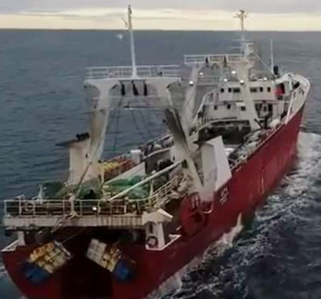 Este es un barco pesquero factoría de altura, o sea procesa todo el pescado que ingresa a bordo. Los factoría de altura operan a mayor distancia de la costa, recorriendo en un periplo que se llama “marea” y que dura aproximadamente 40 días (30 a 50).